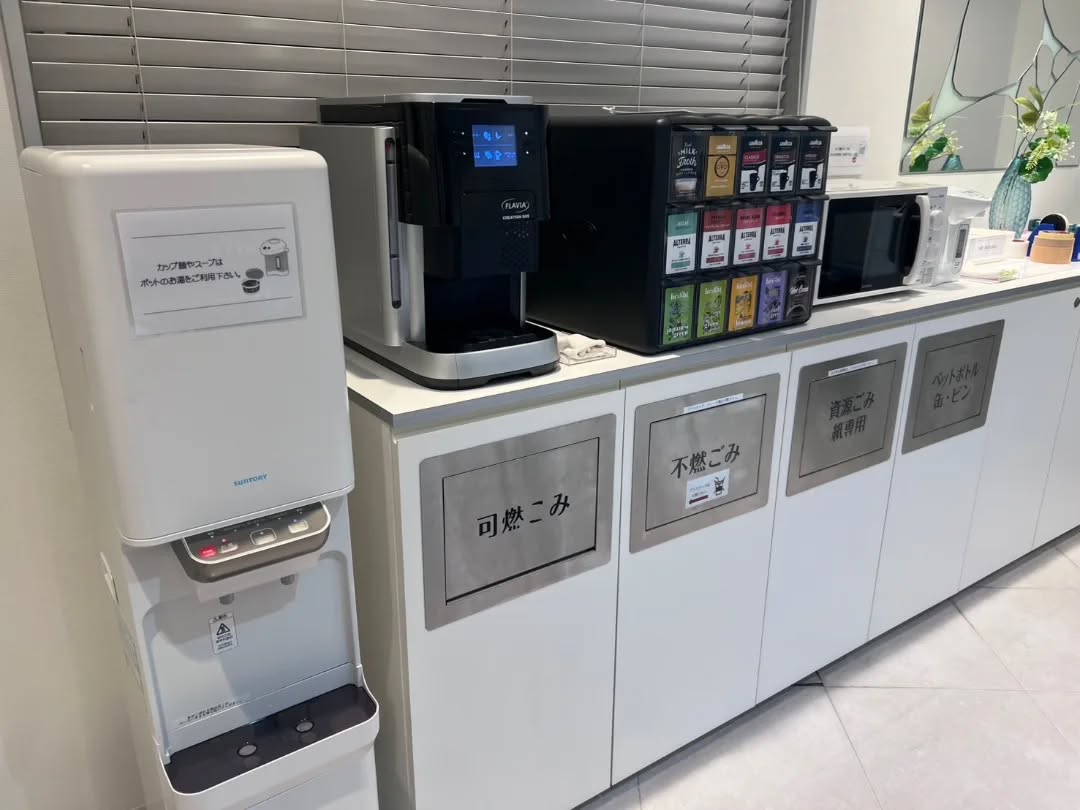 オフィス内には自由に使える共有スペースがあり、自由に飲み物を飲んだり、オフィスグリコでお菓子を買って休憩したりできます🥺